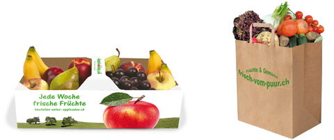- Regionale Bauernbetriebe und Lieferanten (Partner von Appleaday) bringen Ihnen regelmässig (z.B. jede Woche) frische Früchte und frisches Gemüse ins Geschäft oder nach Hause.